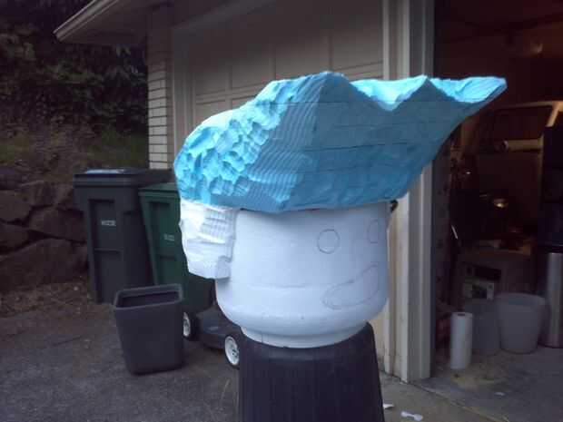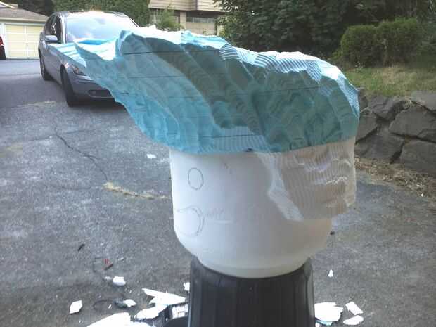 Luego puede mover a un cuchillo eléctrico seguido de una herramienta dremel con un poco de pómez redondeadas. Finalmente puede arena y liso con la pared de yeso spackle. Todo depende de lo que estás haciendo (gorro de cocinero, sombrero de vaquero, casco del espacio).
