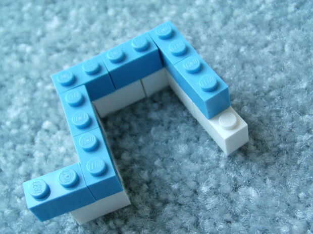 Utilizar ladrillo blanco más 3 y 2 ladrillos azules más y hacer em como la tercera imagen.