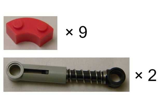Importante: Antes de decidirse a construir esto, mira la segunda foto abajo! Son las piezas de lujo necesitadas. La primera, los nueve ladrillos curvos, son absolutamente necesarios, pero no necesariamente en rojo. Los dos muelles, no son muy importantes; sin él, la puerta no 'jump' abierto como se puede ver en el siguiente vídeo. Todas las otras piezas utiliza, son piezas de lego comunes pertenecen a una colección de lego promedio, o bien puede reemplazar por un suplente.
