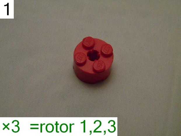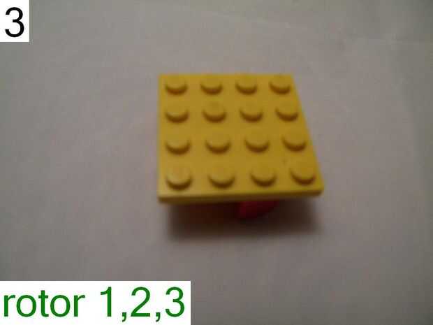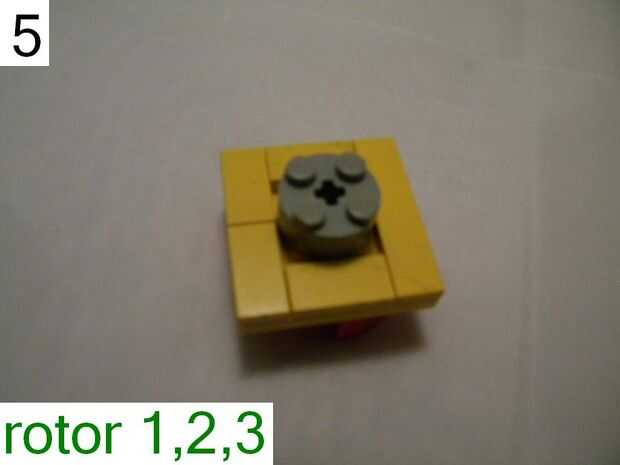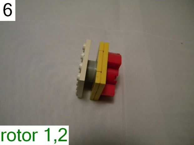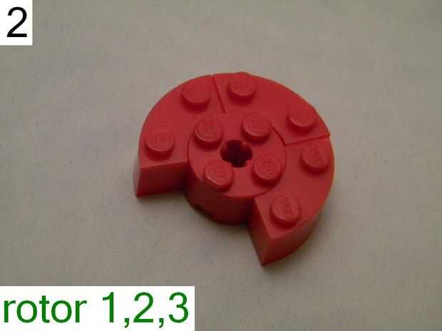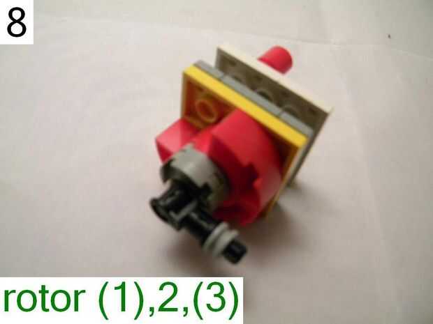 8: Rotor 2 debe ser exactamente así. Rotor 3 tambien, pero sin la placa plus 1 x 1 redonda de ladrillo al final. Para rotor 1 que usted sólo tiene que añadir los dos alrededor de las placas al principio, sin el material pegado en ellos.