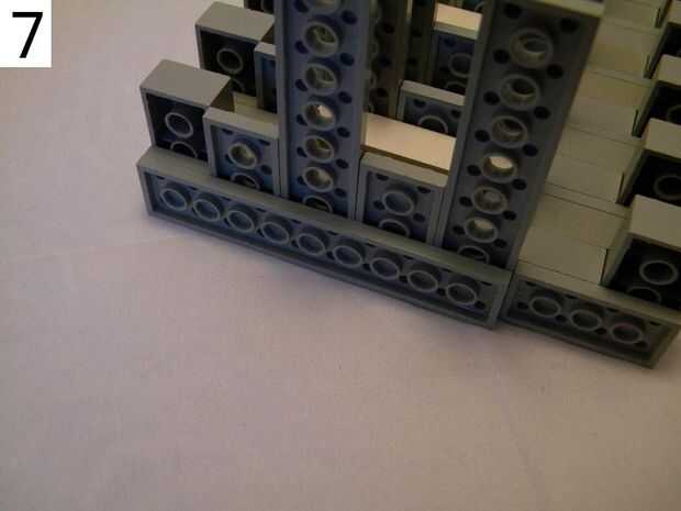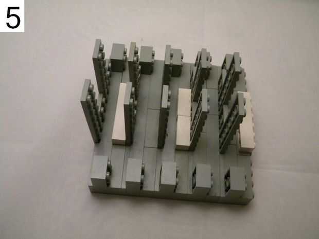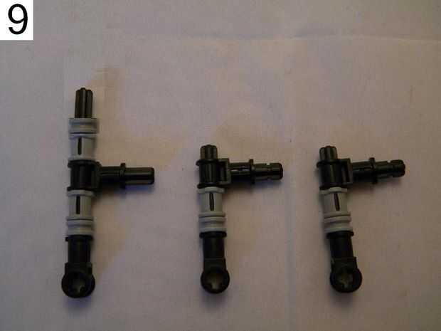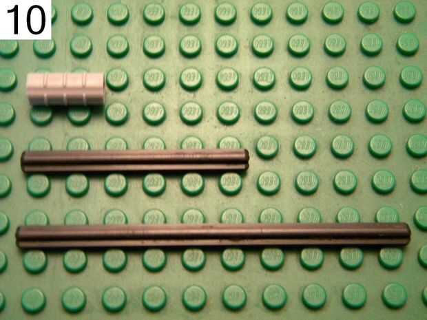 12: Ahora, forman la izquierda, deslice en el pentagrama más pequeño adentro, a través de la espiga más larga. Todos los pines deben estar sobre una barra de 6 x 1.