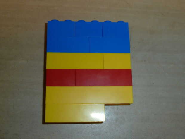 Ate 5 1 x 6 bloques uno encima de otro modo que forman una pared. A continuación, coloque 1 x bloque 4 en la parte inferior. Alinee el bloque de 1 x 4 de manera que un extremo quede a ras con el borde de los bloques de 1 x 6.