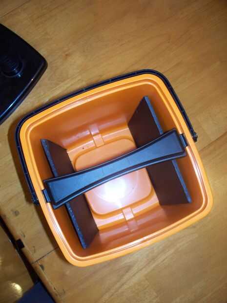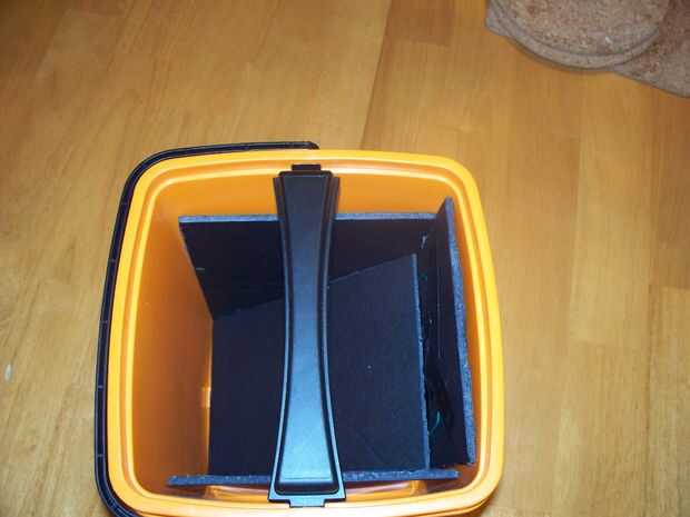 Cortar la base de la espuma a un tamaño que quepa en el recipiente. Mientras que mina era "cuadrada", podría encontrar un envase redondo en cuyo caso sugiero organizar la base de la espuma en forma de cuadrado o caja. Con el cubo de LEGO sólo necesitaba tapper los lados como la parte inferior de la cubeta era más estrecho que la parte superior.