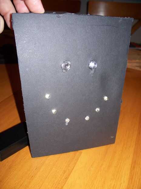 De todos modos, moví el cable de 10 ohm, para 100 ohm, 150 ohmios, ohmios 1.100, a 2.300 ohmios para determinar el nivel de brillo que quería. 10 ohmios resultó en la salida más brillante de la LED.