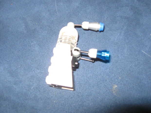 Ahora tomar su cúpula, colóquelo en la parte superior del cuello, hacer otro brazo doble, coloque el cono gris/plata y ponerlo en el extremo del brazo, coloque la viga azul en el extremo del en el brazo luego introduzca el pivote en la cabeza y nivelar el pedúnculo.