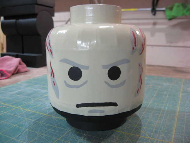 Esto es un 100% hecho en casa LEGO Darth Vader traje, creado con cartón, papel maché y pintura de aerosol. Compré un llavero de LEGO Darth Vader de la tienda LEGO en el centro comercial y utiliza para escalar las medidas y las proporciones. Este traj