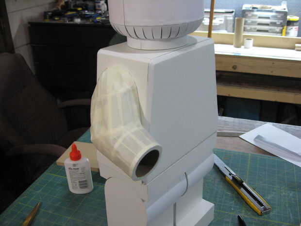 Esto es un 100% hecho en casa LEGO Darth Vader traje, creado con cartón, papel maché y pintura de aerosol. Compré un llavero de LEGO Darth Vader de la tienda LEGO en el centro comercial y utiliza para escalar las medidas y las proporciones. Este traj