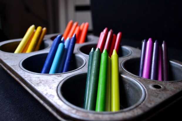 Retire todas las etiquetas y adhesivos de los trozos de crayón. Puede ser un poco lento al principio, pero eventualmente podrá golpear un ritmo y encontrar una estrategia de eliminación que funcione para usted. Una vez el papel, cualquier resto de adhesivo generalmente saldrá rodando fuera con la yema del dedo.