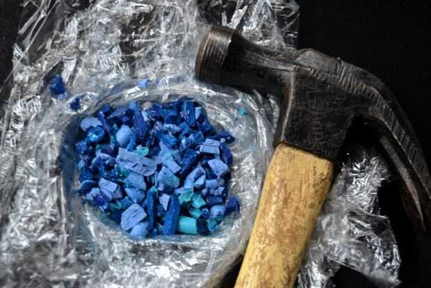 Para una apariencia más manchada, envuelva un puñado de lápices de colores en varias capas de película de plástico y toque suavemente con un martillo hasta obtener trozos pequeños. Mantener un ojo hacia fuera para los agujeros en el plástico; ayuda a hacer este paso sobre periódico para recoger las migas.