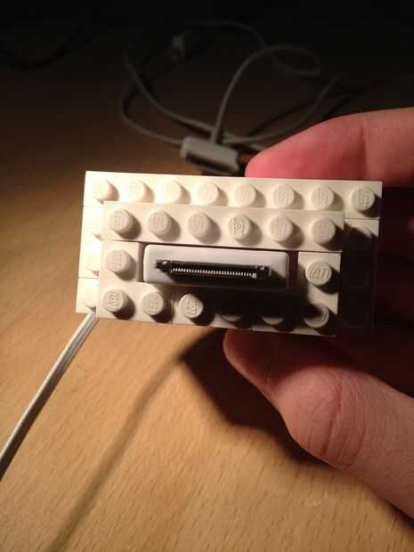 Dependiendo de si su uso un cable genuino o no esto debe trabajar con los cables baratos cabrán stug en un espacio de 4 x 1 puede que necesite usar algún tipo de pegamento para mantenerlo incluso bluetack obras! Utilizar 2 x bloques de forma L y colocarlos a ambos lados entonces use un bloque de 6 x 1 para la parte de atrás que se basaba en 4 x 2 x 1 bloques dentro de la brecha