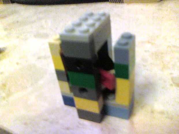 Este es mi dock cargador de iphone. Ha hecho lego de la forma como muchos otros pero este uno no utiliza pegamento y no destruir cualquier lego o los cables. La única parte de lego no es dos pequeños trozos de cinta adhesiva. Es fuerte y portátil y p