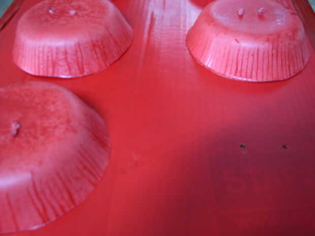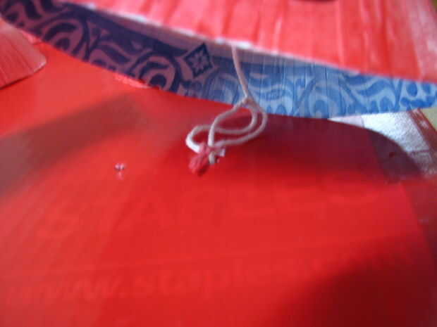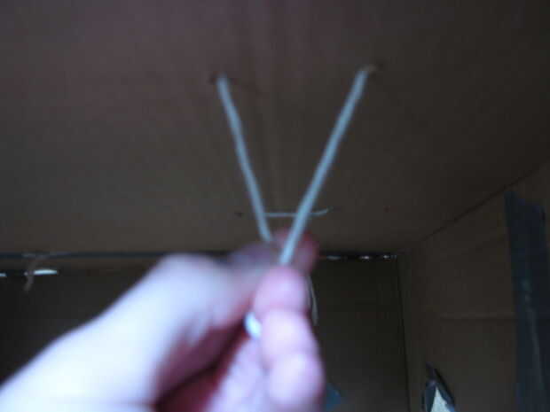 Una vez que la pintura esté seca se pueden añadir los tazones de fuente. Meter a las tijeras o una pluma a través de la caja. Esto es donde se unirá a la caja de los tazones de fuente. Hacer 2 agujeros para cada tazón. Una vez que la cadena es a través de la caja de unir las 2 piezas y con cinta adhesiva hacia abajo. Repetir 5 veces más.
