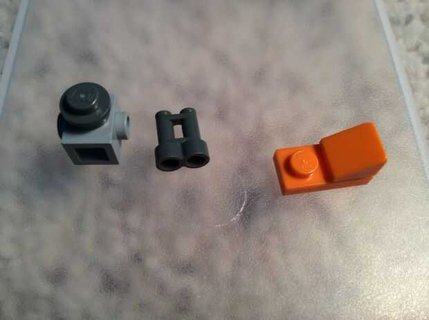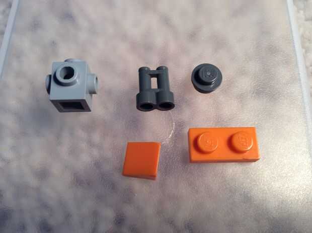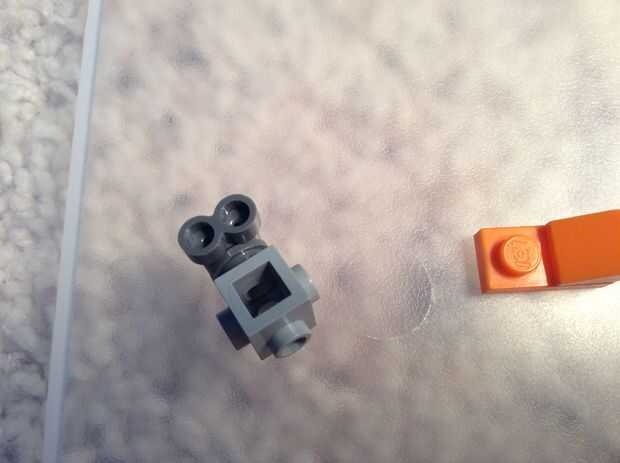 El cuerpo es solo un sextante gris luz. Para la cabeza, tomar un oscuro gris stud y lugar ontop de prismáticos. Ellos, tomar una placa naranja de 1 x 2 y paso una pendiente de queso naranja en él. Tenerlo y ponerlo detrás de la cabeza.
