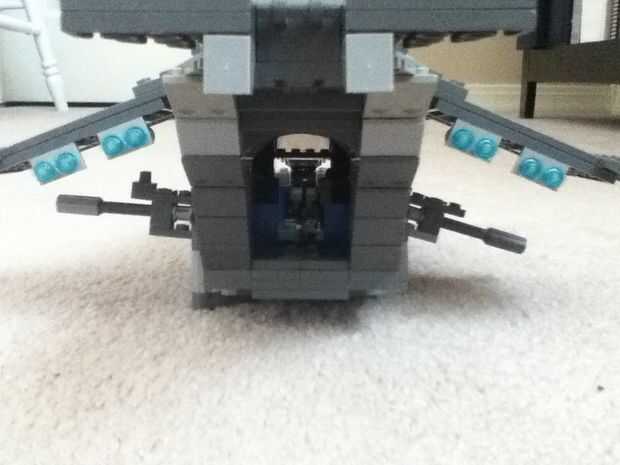This is my lego pelican. Su base en el pelican de halo pero he cambiado la forma y añadido unos cuantos mods de mis propios como armas ocultas etc.... De todos modos su bastante polvo porque su estado sentado en mi estante para un par de semanas.