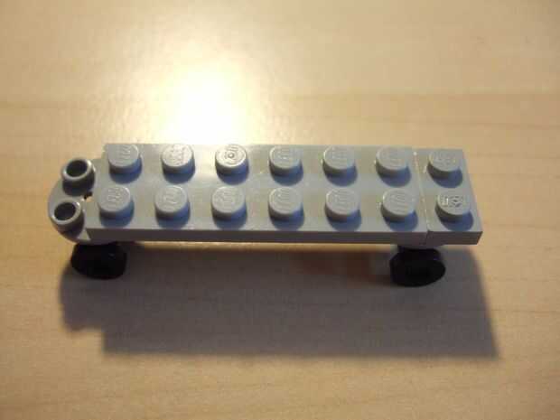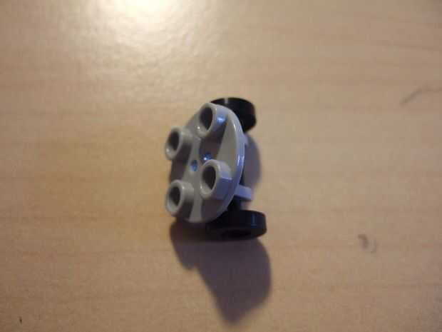 3. Tomen la otra rueda y colocar una placa de 1 x 2 en la parte superior es paralelo a las ruedas