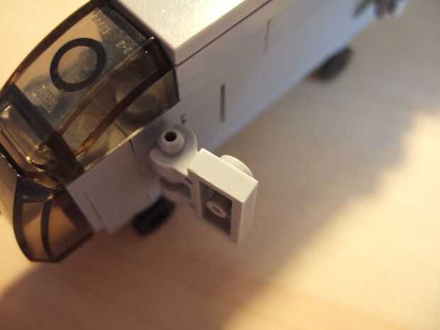 1. Inserte el perno medio en una barra t en la viga de ladrillo de 1 x 1 izquierdo más cercana a la cabina
