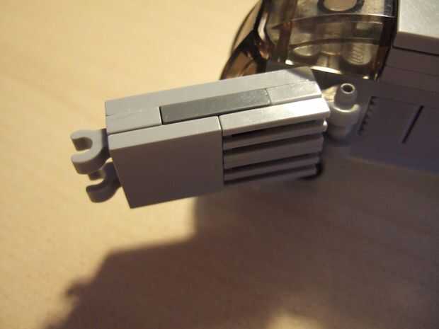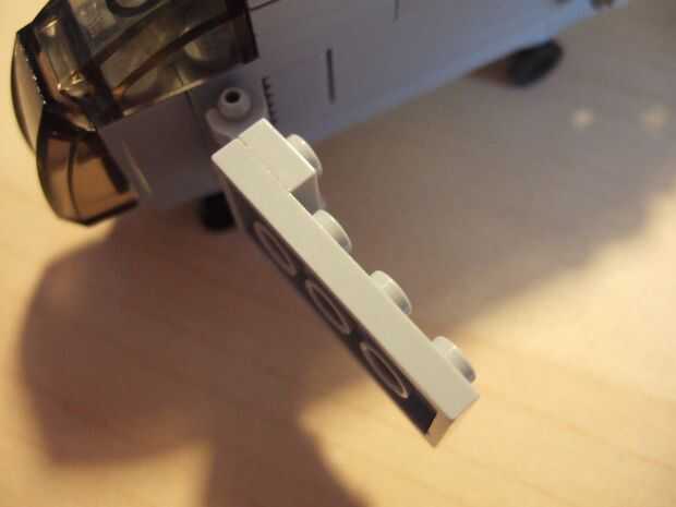 9. Coloque una placa de 1 x 2 con una pinza de técnica a la parte inferior de la pieza anterior. La pinza debe boca abajo