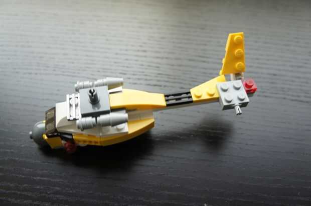 un helicóptero simple para aquellos que no tienen el pequeño lego.Paso 1: Las fotos The gray piece is a swivel to allow the rotars to spin freely