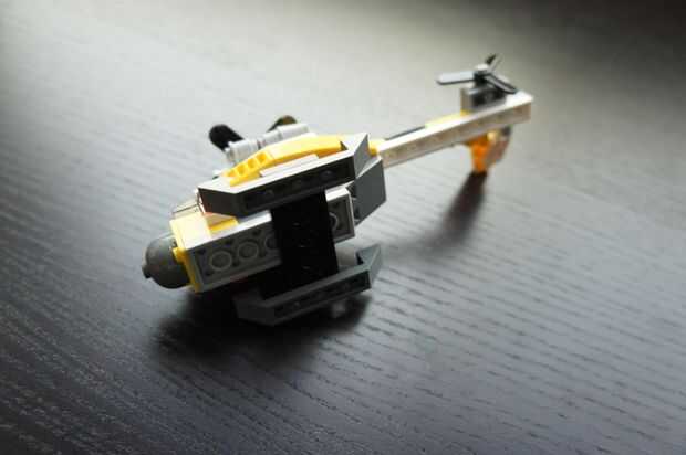 un helicóptero simple para aquellos que no tienen el pequeño lego.Paso 1: Las fotos The gray piece is a swivel to allow the rotars to spin freely