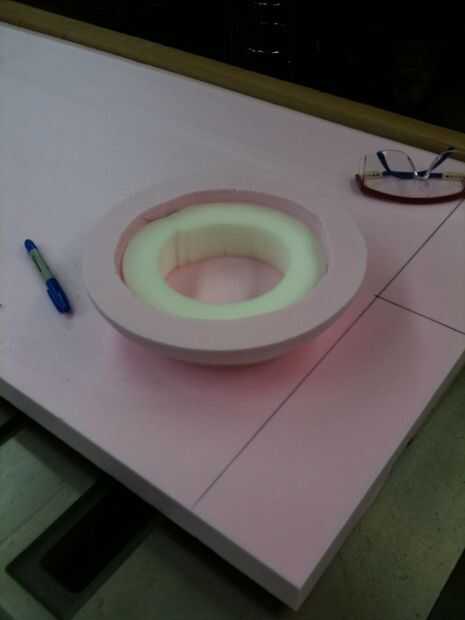 Después de todos los círculos se cortan solía la malla de yeso bruto las tapas superior e inferior redondeadas. Trabaja muy rápido para tener cuidado de que no tomar demasiado material. Entonces usé papel de arena de grano de 100 y 220 para quitar las marcas de la malla de izquierda y también la arena hacia fuera cualquier marca de Sierra de cinta.
