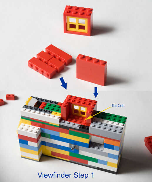 Primero montar dos paredes con ladrillos estándar como se muestra. Presionan en el espacio vacío en la parte superior de la cámara.