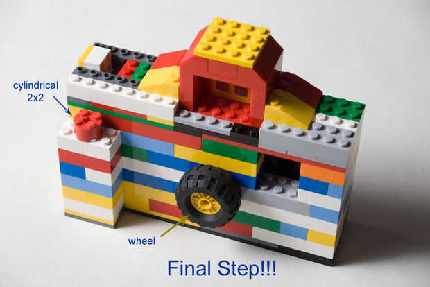 Simplemente presione el bloque cilíndrico en el mango para servir como el disparador de falsos y broche de presión en la rueda a la entrada en la parte frontal de la cámara como la lente falsa.