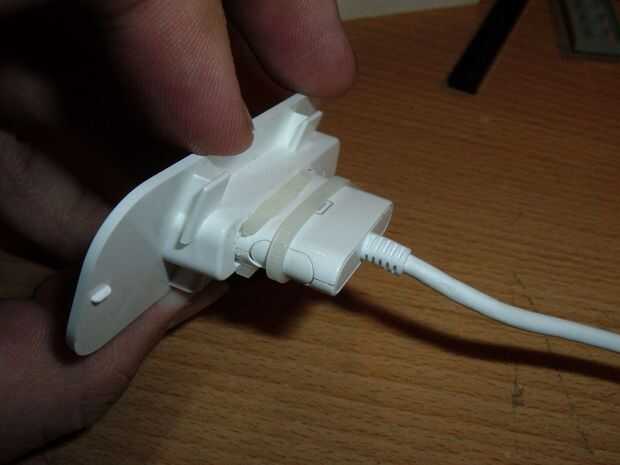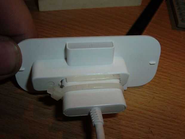 He pasado el cable a través del adaptador, había conectado el nano y resbaló en el adaptador. Esto le permitirá pegar el cable de sincronización en su lugar. Parece un poco getto porque utilicé los restos de las abrazaderas de plástico para pegar todo junto.