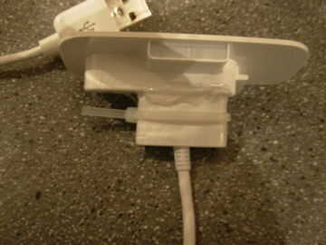se trata de un dock para un ipod nano con Lego y el adaptador suministrado con el ipod. Es una adaptación de nano de otro tamaño completo lego iPod dock.Paso 1: Prepare el cable adaptador y sincronización Necesita agrandará el agujero en la parte inf
