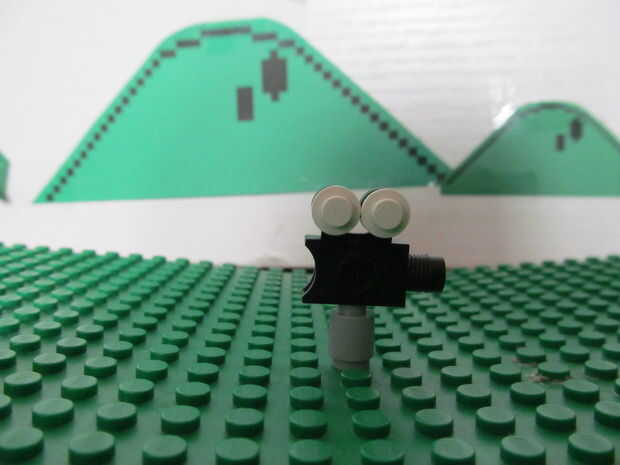 he encontrado mis accesorios en mi garaje de tíos. Estaban en una bolsa de plástico vieja. Creo que son de una película LEGO desde la década de 1980. Para construir la cámara pongo tres circular 1 x 1 en. Luego poner un pedazo en la parte inferior por lo que podría seguir.