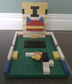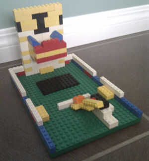 Llamo a esta obra "basketbrick", no se utiliza con un baloncesto mini, en su lugar utiliza un ladrillo de 2 x 2!
