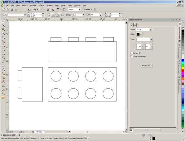 La escala final terminó siendo determinado por otra pieza de Lego clásico - el estándar 32 x 32 Plate(Item 620) edificio. En 10 1/16" cuadrados puedo pegar 2 en la parte inferior de la tapa. Trabajando hacia atrás desde esa dimensión determinará el resto de la