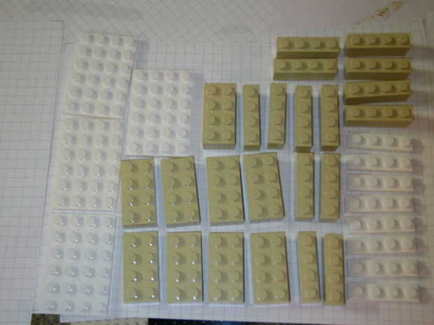 La segunda imagen muestra las placas blancas y tan ladrillos que usé para hacer la base.
