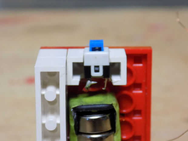 2. luego de la soldadura en uno de los hilos de cobre al terminal de interruptor y uno de los cables de la batería a la otra terminal del interruptor.