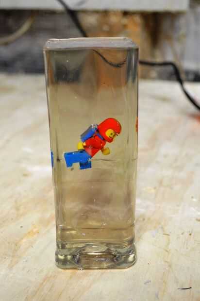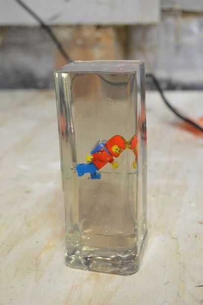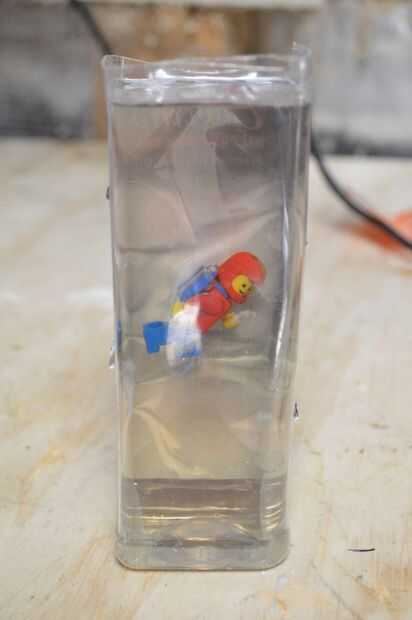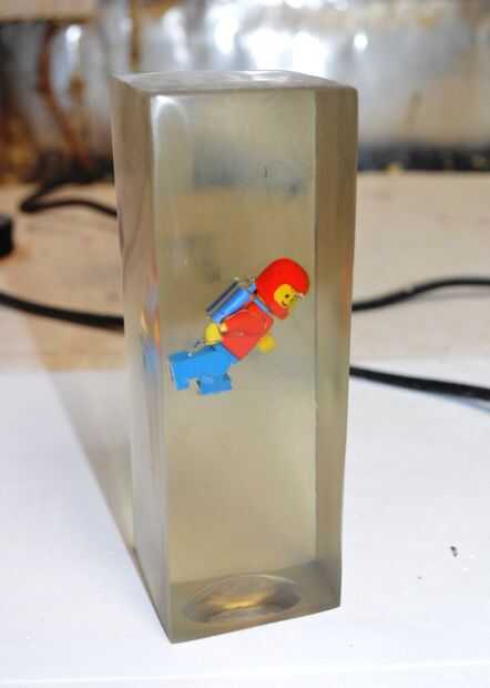 2. una vez quitado que debe tener una columna bastante apuesta de resina con un Lego astronauta dentro.
