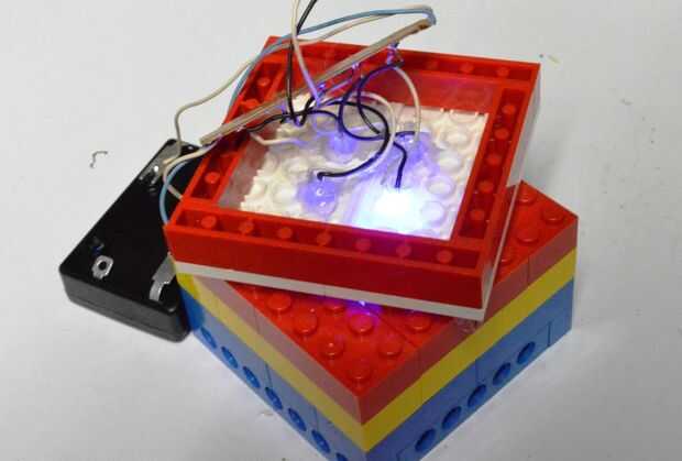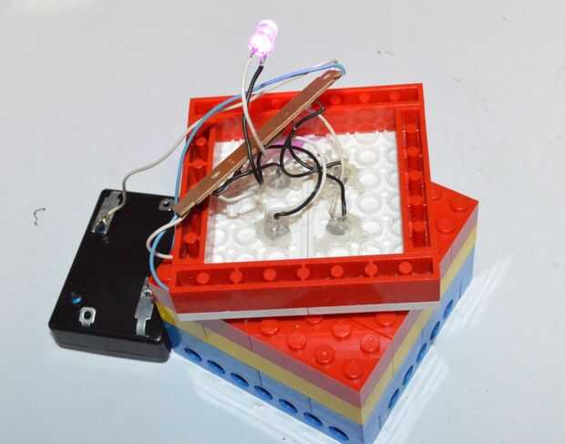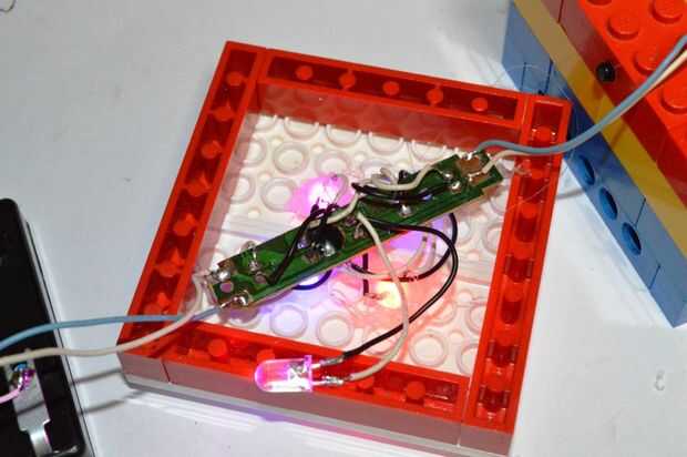 Ahora la tomo para agregar el LED a la caja de Lego. Hay 5 LED en total que se puede Agregar a la caja. Decidí sólo añadir 4 y otra en ladrillo claro. La razón de ser, era mucho más fácil de añadir 4 a las secciones planas de Lego de 5!