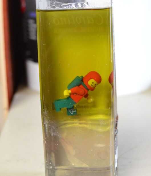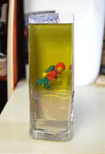 3. dejar establecido y una vez seco, añadir a tu hombre de Lego. Añadí algunos pegamento a uno de sus pies y con cuidado le pegan a la resina.