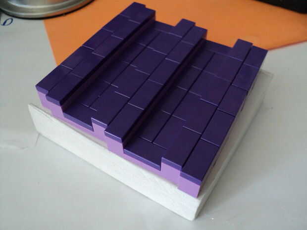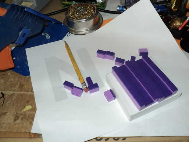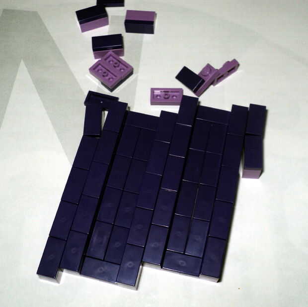 Yo no tenía ningún Lego ladrillos alrededor de la casa así acabo mucho lote de en línea. No conseguí cualquier placa LEGO por lo que solo caliente pegué mi formación sobre un bloque de chatarra Junta moldura de PVC. Las filas se han montado un poco inclinadas para dar la impresión de algún personaje.