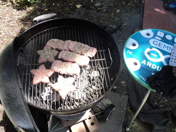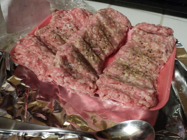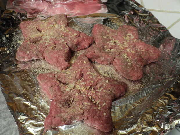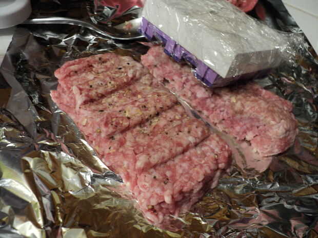 Sello de la patty con su matriz de McRib. Presione con firmeza para conseguir una buena impresión. Si la patty rezuma hacia fuera y deforme demasiado, sólo pack en su sitio y ordenado.