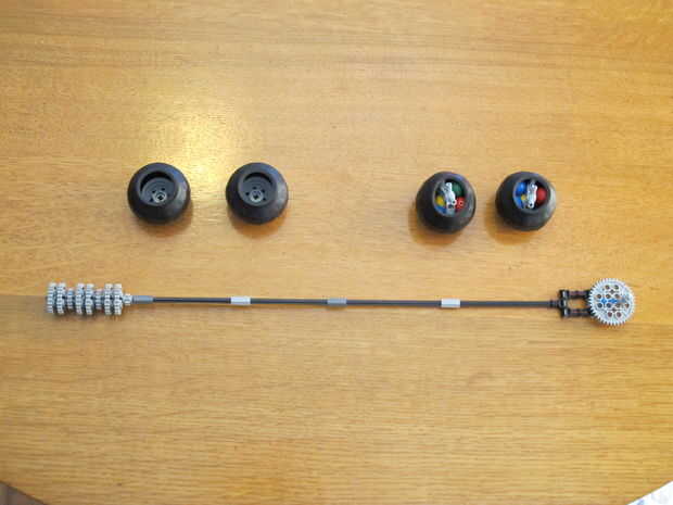 Comenzó como una catapulta, y las balanzas de bola llenada son un remanente de eso. Las bolas en su interior vuelan en todas direcciones cuando golpean el suelo. Esto significó para NXT 1.0, excepto las bolas son de 2.0. Puede utilizar mármoles como sustituto. Si alguien puede adaptar esto para 2.0, me encantaría ver una foto.