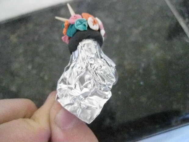Poner en el horno a 250 grados y hornear durante 20 minutos (dependiendo de su marca de arcilla).