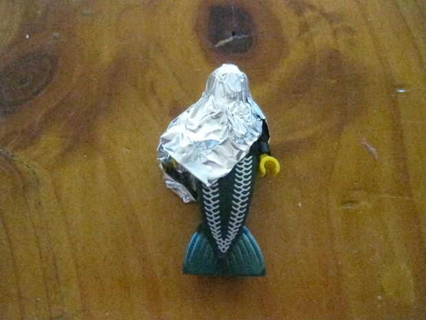 Cubierta en papel de aluminio porque es más fácil de bajar, cuando termine con su LEGO mini figura de pelo.