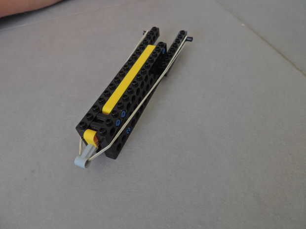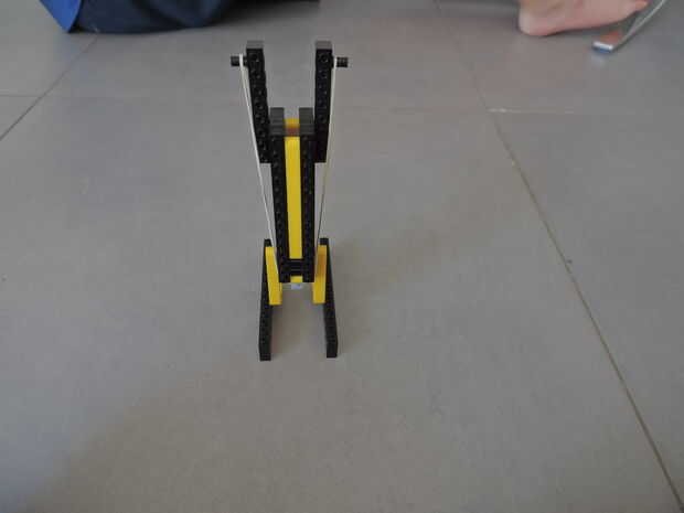 esto es un golpeador de bola de fútbol mini eléctrica hecha de piezas de lego. Esto tiene un tobogán que le cae la pelota de fútbol en. Mueva el interruptor hacia abajo para disparar. Una persona puede utilizar el palo atado al portero para intentar