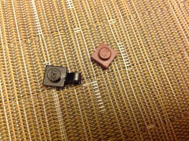 Hacer que el cuerpo de los mini luchadores usando un ladrillo de 1 x 1 y usando un ladrillo de 1 x 1 con una manija en el lado.