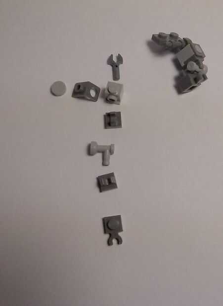 Toma las piezas de la pierna y ponerlos juntos como en esta foto. He dejado una pierna sin montar para mostrarle donde van todas las piezas.