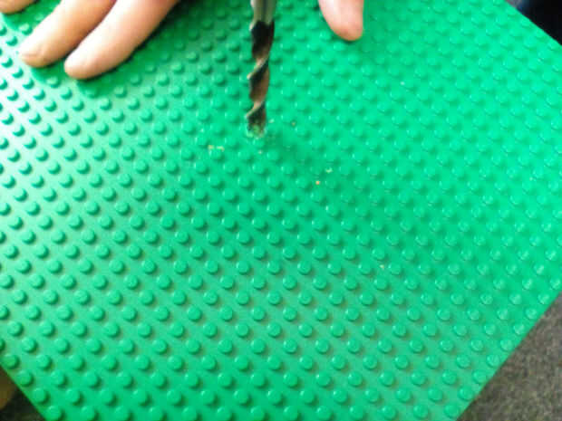 Primero, se debe medir el diámetro del eje del mecanismo del reloj. Luego perfore un agujero en el centro de la placa base - tener cuidado porque el zócalo es delgado, y el plástico del ABS hecha de Lego puede empezar a fundirse debido al calor producido por el taladro. Dicho esto, es bastante simple y rápido!