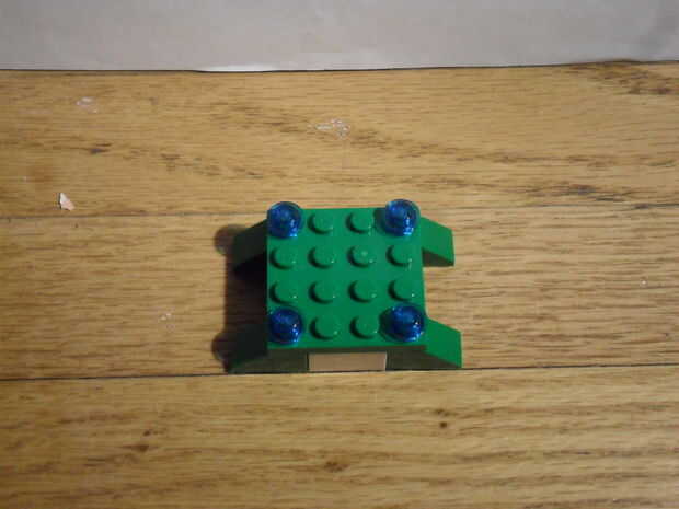 En este paso vamos a añadir las piezas de plataforma de 1 por 1 redondeado. Volver a voltear la pieza de la plataforma de 4 por 4 y añadir un piezas de plataforma de 1 por 1 redondeados en cada esquina como se muestra.