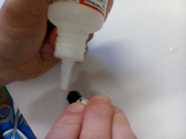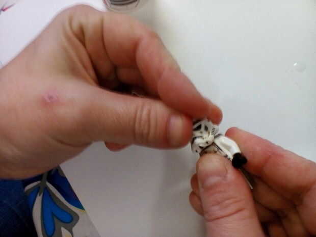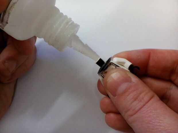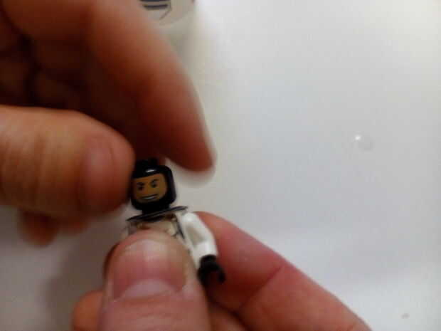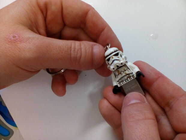 A continuación, utilice una gota de pegamento para fijar la cabeza y el tocado de sombrero de pelo en su lugar. No es obligatoria, pero mucho menos molesto que perderlas... o, si ha agregado un llavero, perdiendo su unidad flash y quedarse con sólo la cabeza!