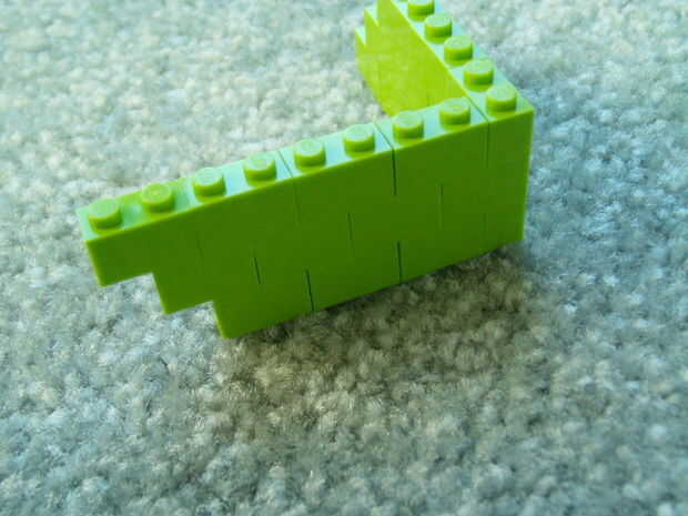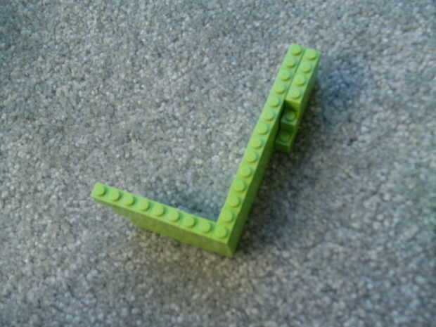 Iniciar con la construcción de una estructura de 3 capas de alta y que se escalona en el extremo como se muestra en los cuadros primeros y segundo. El nivel superior debe ser 9 postes de madera (los puntos en la parte superior los ladrillos) largo. Vuelta a la esquina de 90 grados y seguir la tira hasta 14 postes largos. Ahora usted debería tener un hacia atrás continuar L. colocar ladrillos para que construir otra línea de 14 pernos prisioneros va derecha próxima a la última.