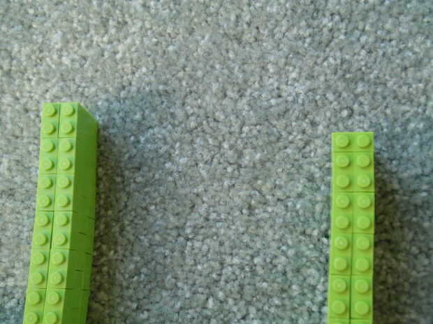 Note que el primer Ls espalda con espalda se remata por dos ladrillos verticales pero el siguiente par de L es rematado por un ladrillo horizontal. Como generar, estos seguirán ir hacia adelante y hacia atrás.