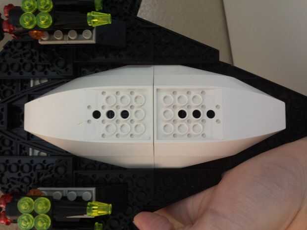 Lo que usted quiere comenzar con es el casco y la cabina. Generalmente, usted quiere encontrar algunas piezas de casco curvo, posiblemente de un barco o un submarino LEGO set. Asegúrese de que es plana en los bordes agregando más piezas y dejar un lugar para el piloto o el artillero. Un núcleo de energía (sólo algunas piezas semitransparentes bloqueados juntos) hace una gran adición para el detalle y para tratar de ser precisos.